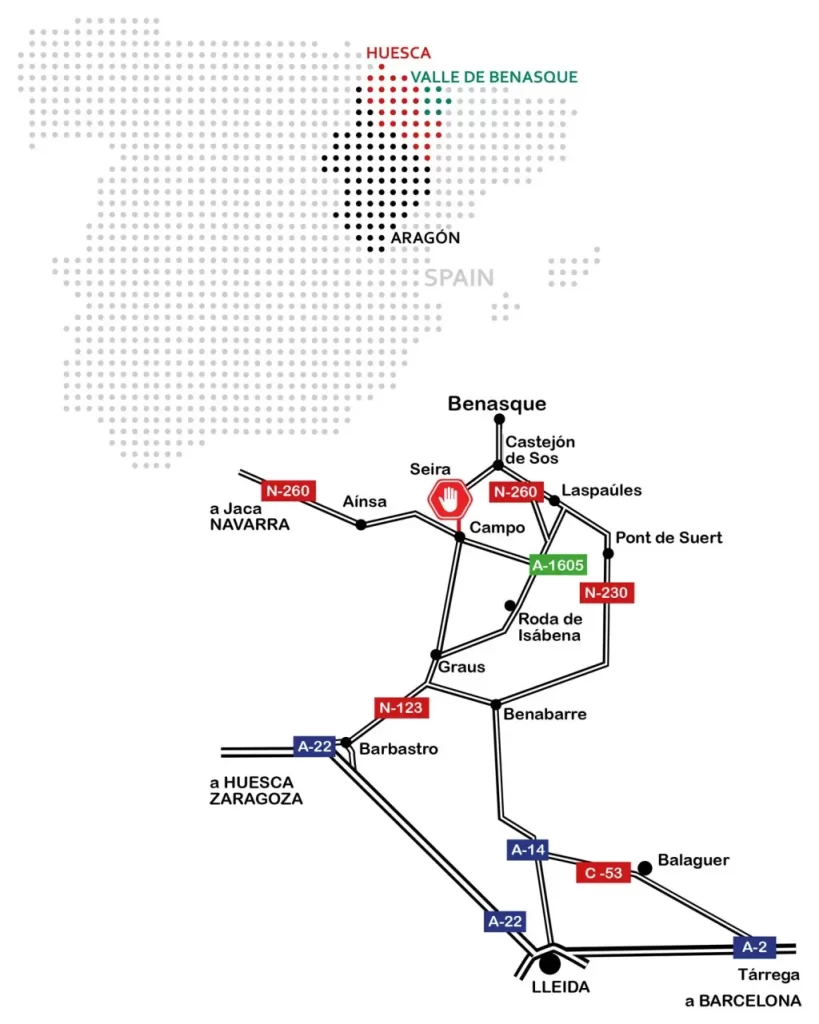 Desde hace un tiempo se están realizando obras de mejora en el acceso al Valle de Benasque que suponen, algunas temporadas, el corte de la carretera N-260 entre Campo y Seira.